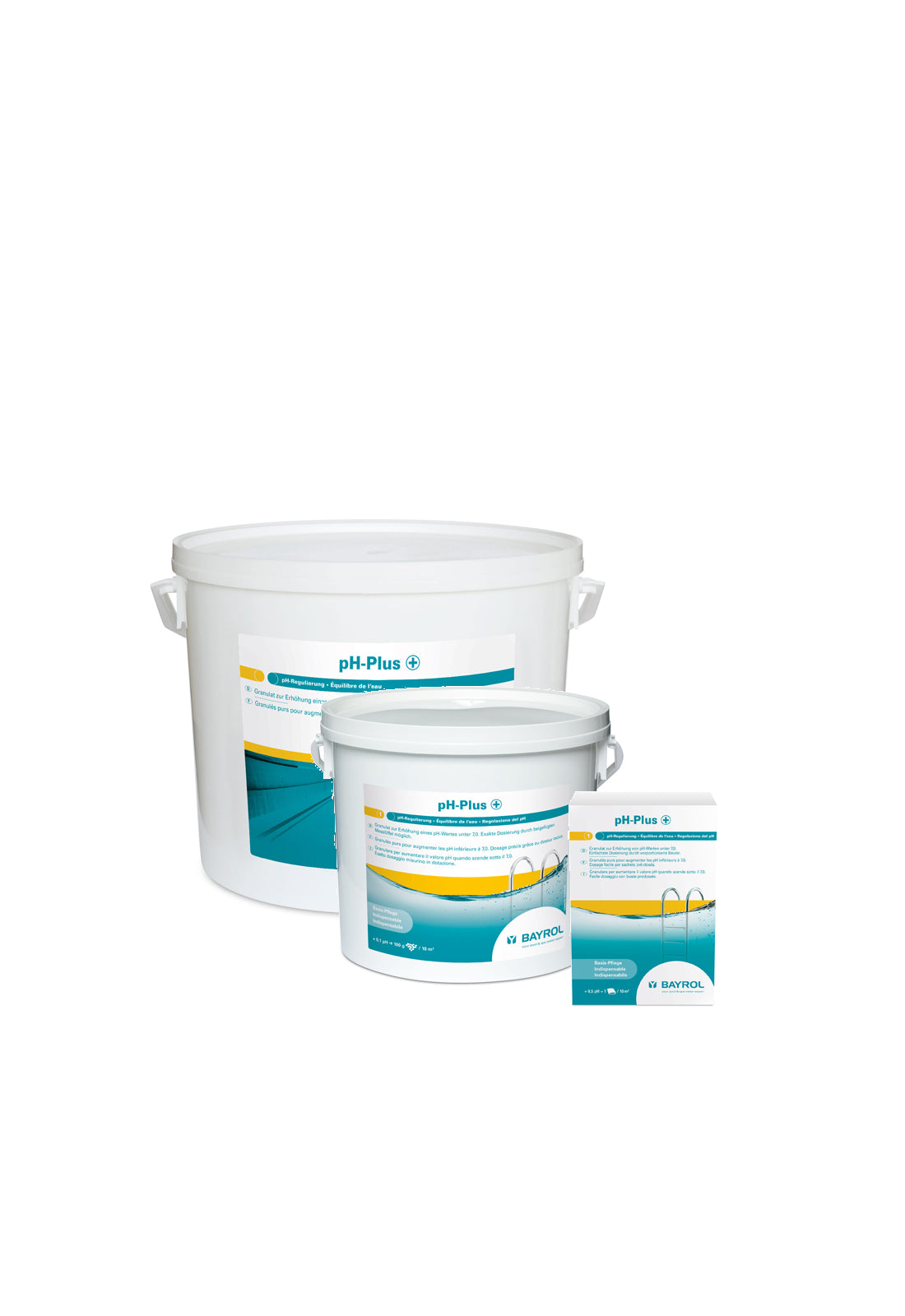 pH-Plus besteht aus hochwertigem Natriumcarbonat-Granulat, welches sich rasch und rückstandsfrei auflöst. Das Granulat hilft den pH-Wert zu stabilisieren und reguliert effektiv den pH– Wert im Schwimmbadwasser.