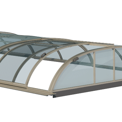 Die Seitenschiebetüre ist immer im größten Segment der Poolüberdachung möglich. Es kann ausgewählt werden (nach der Bestellung), ob die Seiten-Schiebetüre nach Links oder rechts geöffnet wird. Optimal geeignet für Pools mit seitlichen oder Ecktreppen.